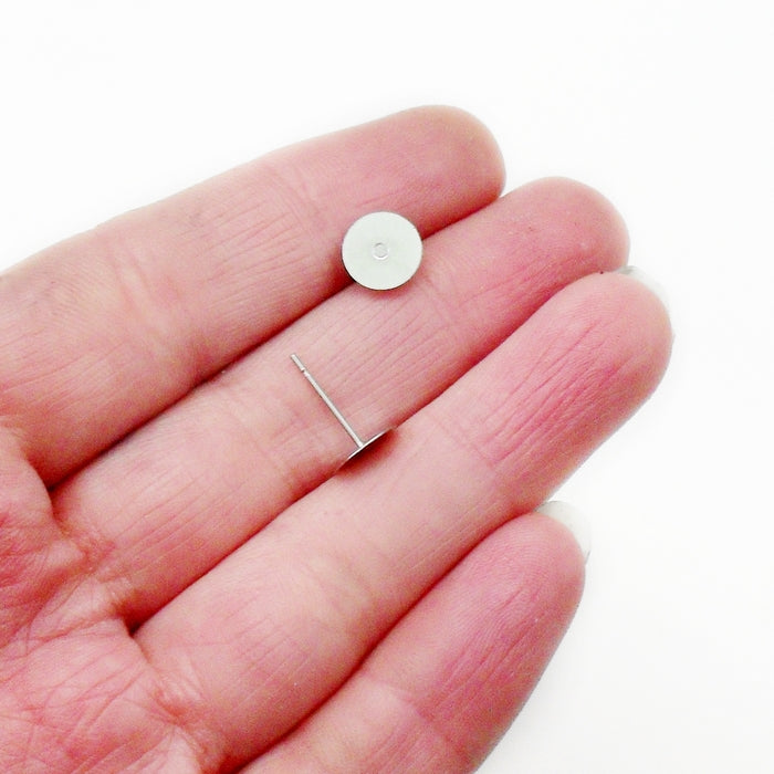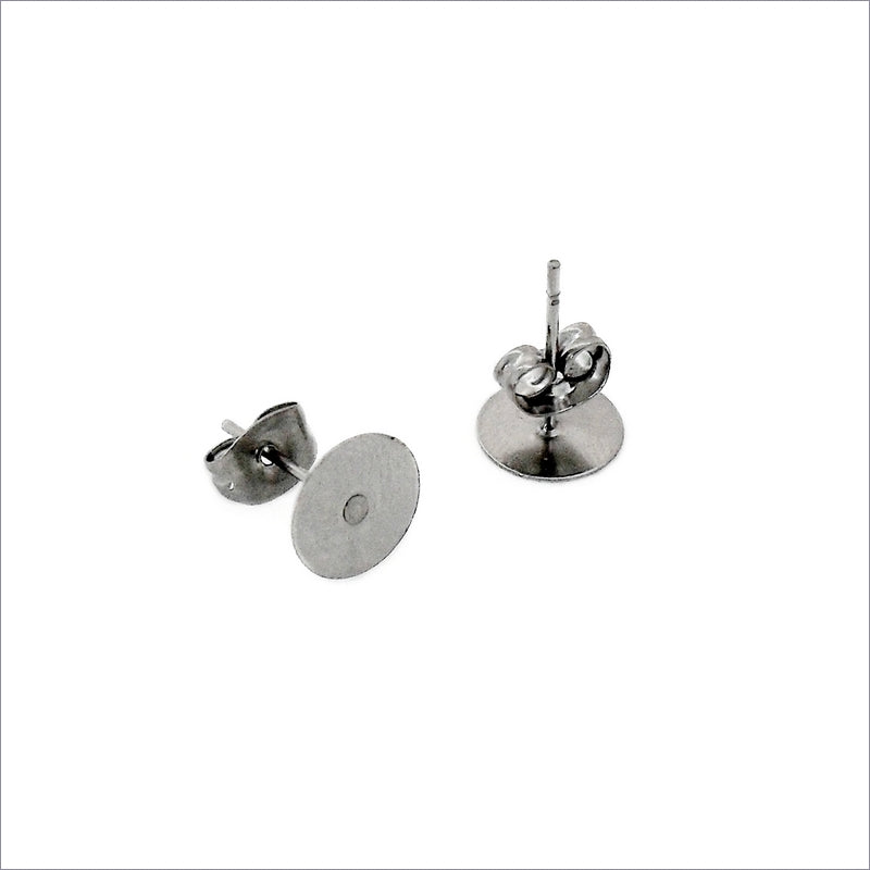 Stainless steel earring studs with a flat, 8mm diameter pad - add cabochons or other embellishments to create unique earrings.
