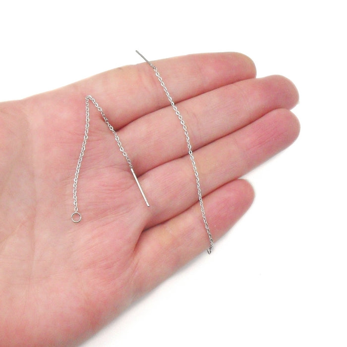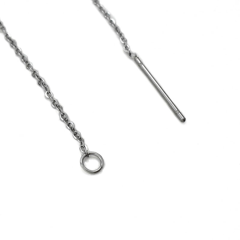 Five pairs of stainless steel threader earrings. The chain is ultra fine, and features a jump ring at the end to attach charms or other findings. (The jump ring is 4mm outside diameter x 0.6mm thick)