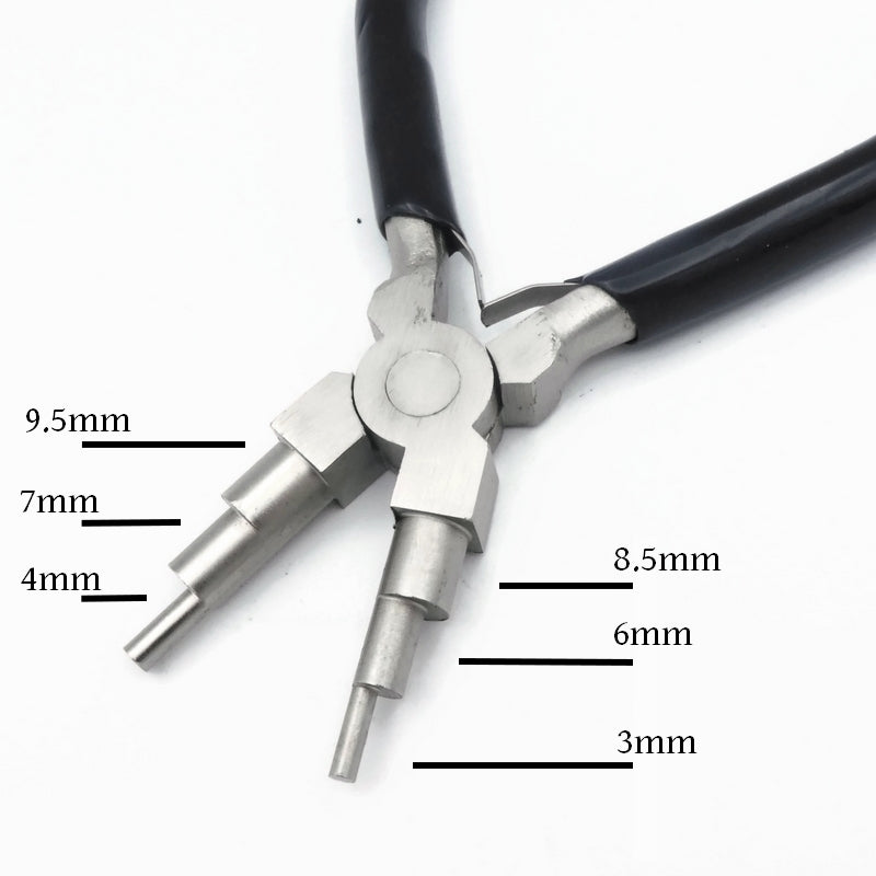 One pair of wore forming pliers, with six different diameters for shaping and creating bend and loops in wire.