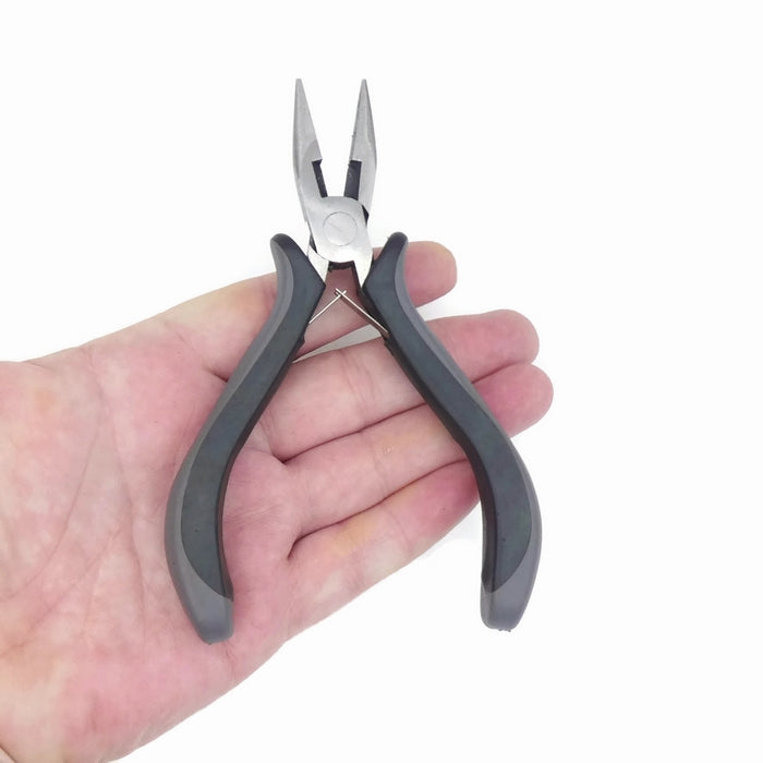 - Needle Nosed: 16cm long, Jaws: 5.5cm long, 6mm wide at the base, tapers to 2mm wide at the tips.