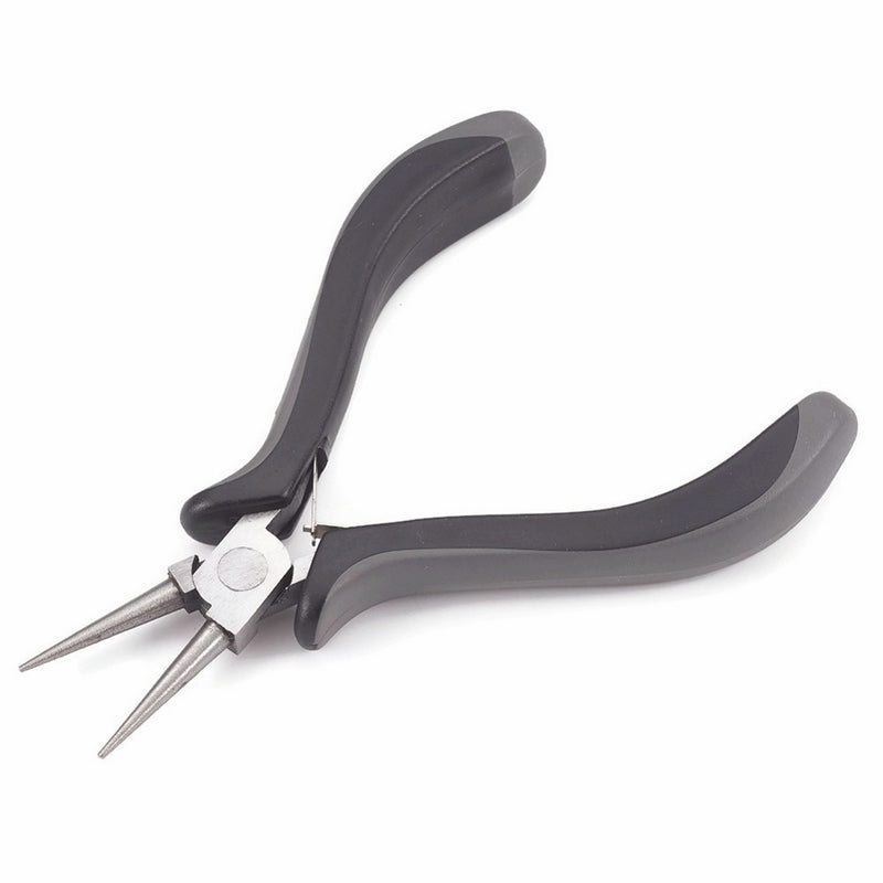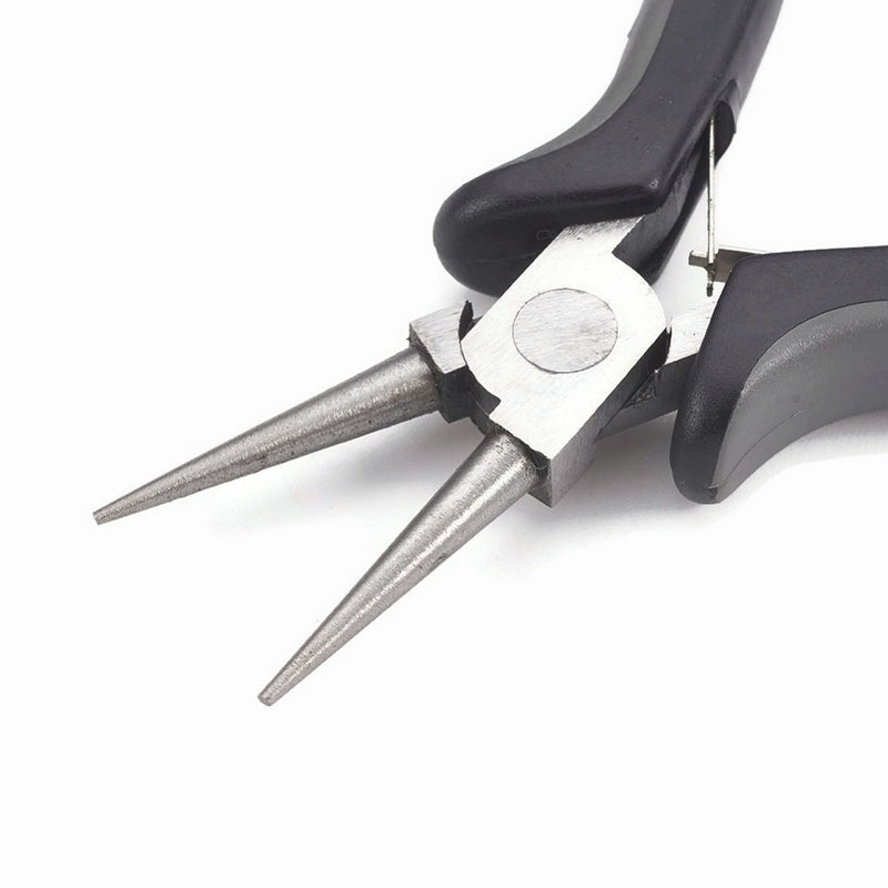 One pair of jewellery making pliers, with carbon-hardened steel jaws and sturdy, comfortable plastic handles (seam-free to reduce irritation from prolonged use). These have been lubricated for protection during storage.