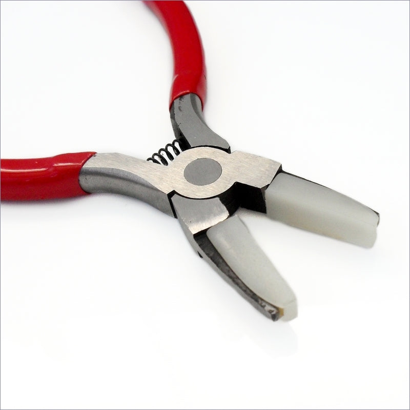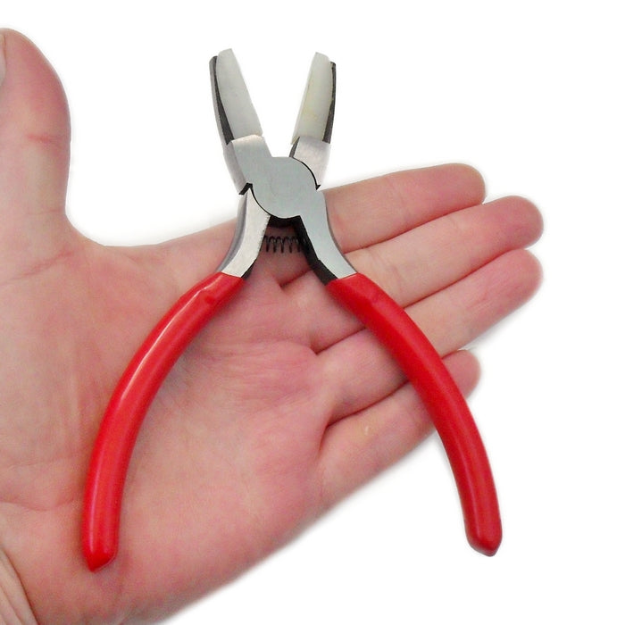 One pair of nylon jaw pliers, made from carbon steel and with smooth coated handles. Great for helping to straighten wire, or to help prevent marring materials with metal jaw pliers.