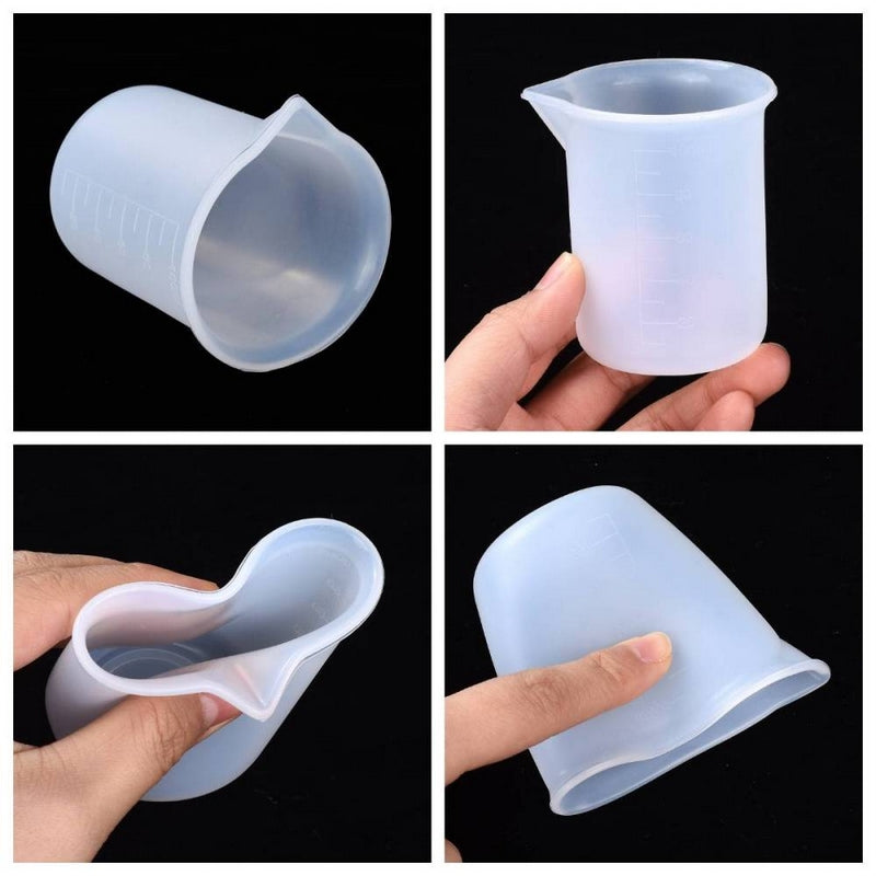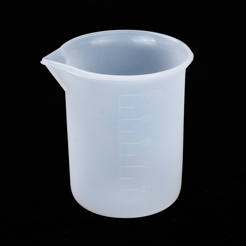 Two silicone measuring cups with a 100ml capacity, with a spout for easier pouring - these are highly flexible and re-usable.