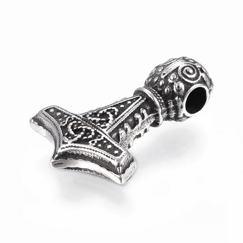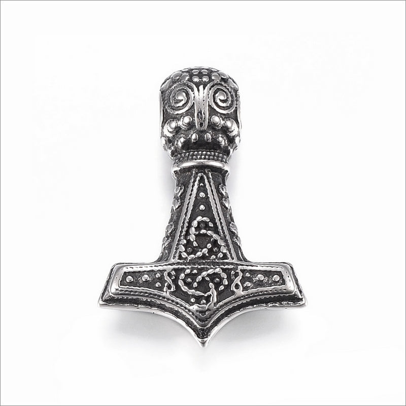 One stainless steel Mjolnir pendant, with an antiqued finish and featuring a dotted pattern with Celtic triquetra knots - perfect for Viking inspired pieces.