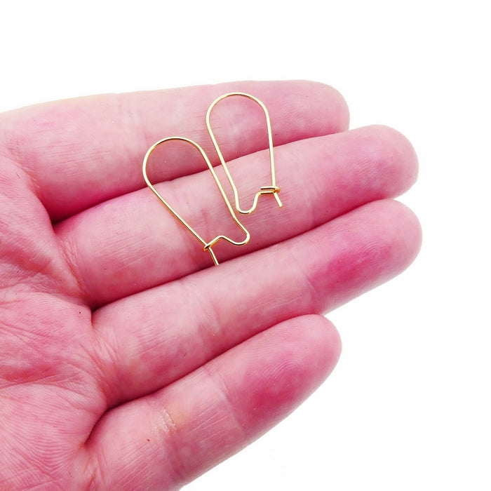 10 pairs of surgical grade stainless steel kidney earring hooks, electroplated for a durable and rich gold tone finish.