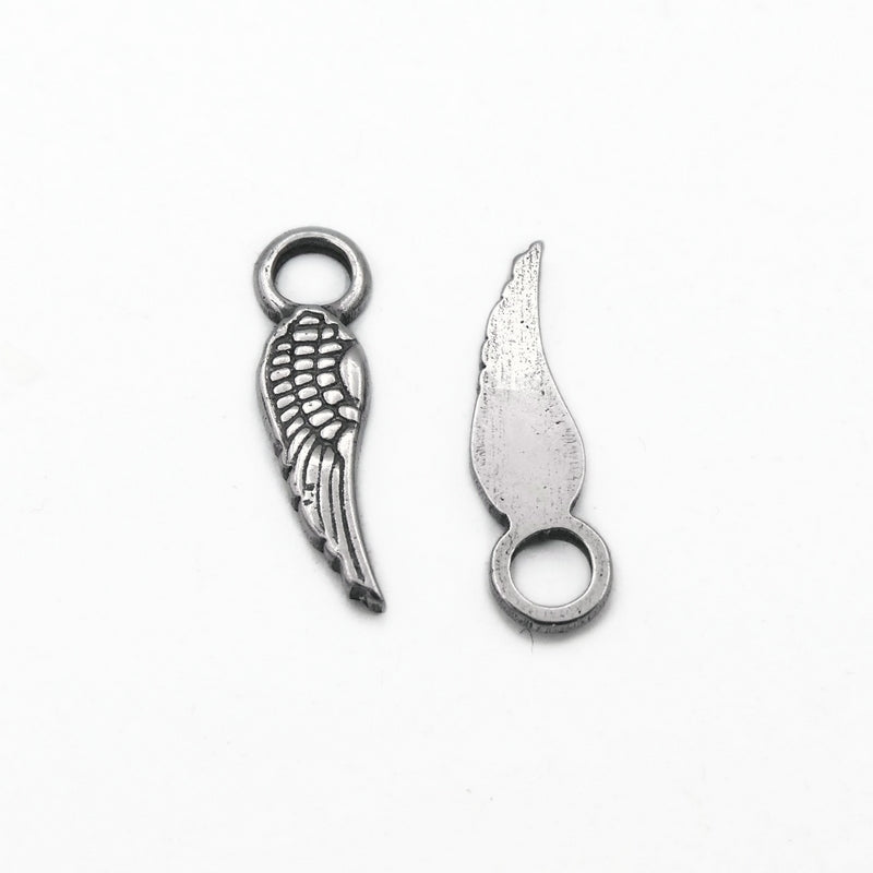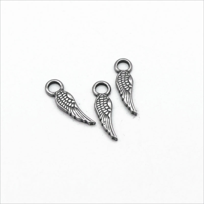 Ten small wing charms, single-sided, in a matte finish with matte black highlights for a vintage look.