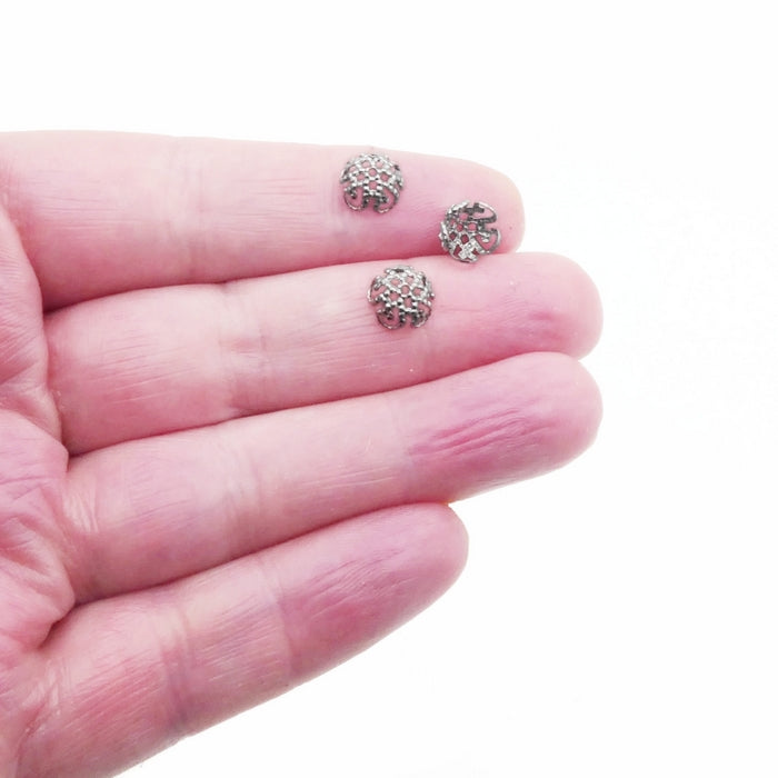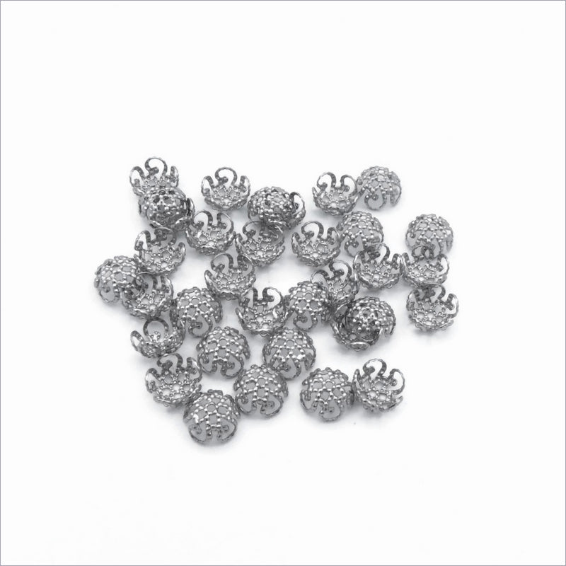 100 Stainless Steel 8mm Embossed Filigree Bead Caps