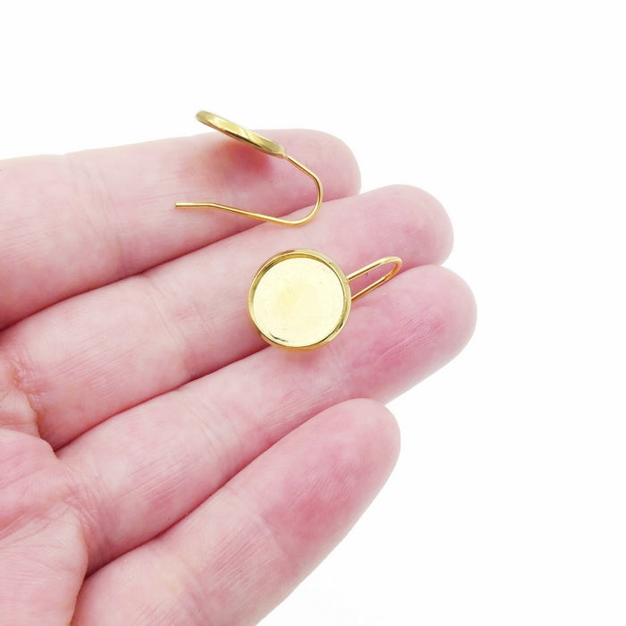 Five pairs of stainless steel earring hooks, with a tray suitable for 12mm diameter flatback, round cabochons.