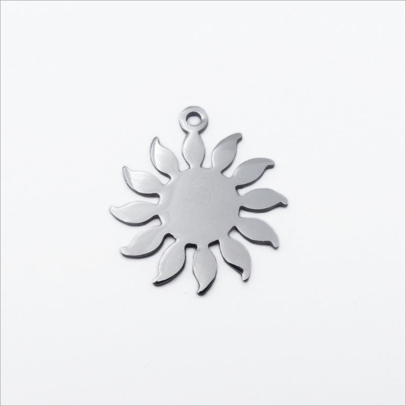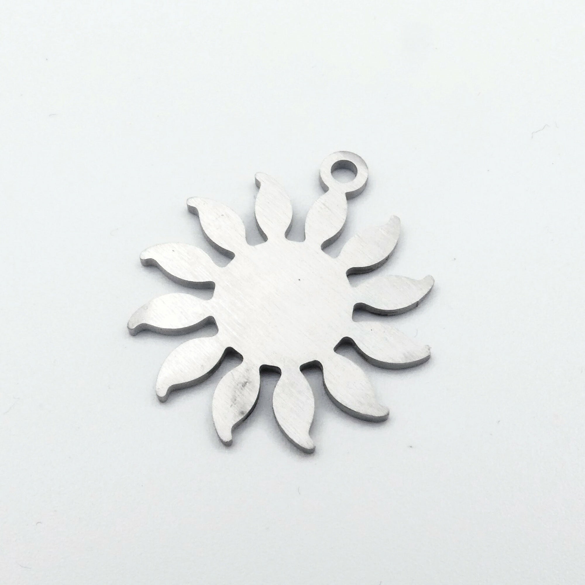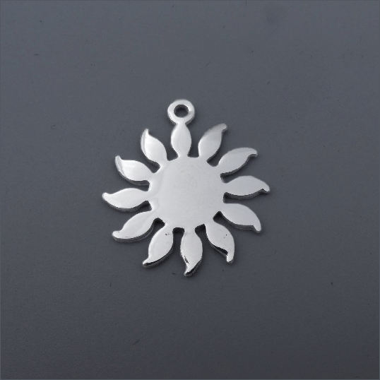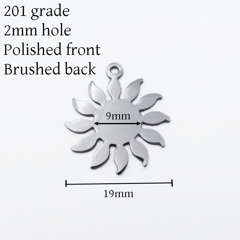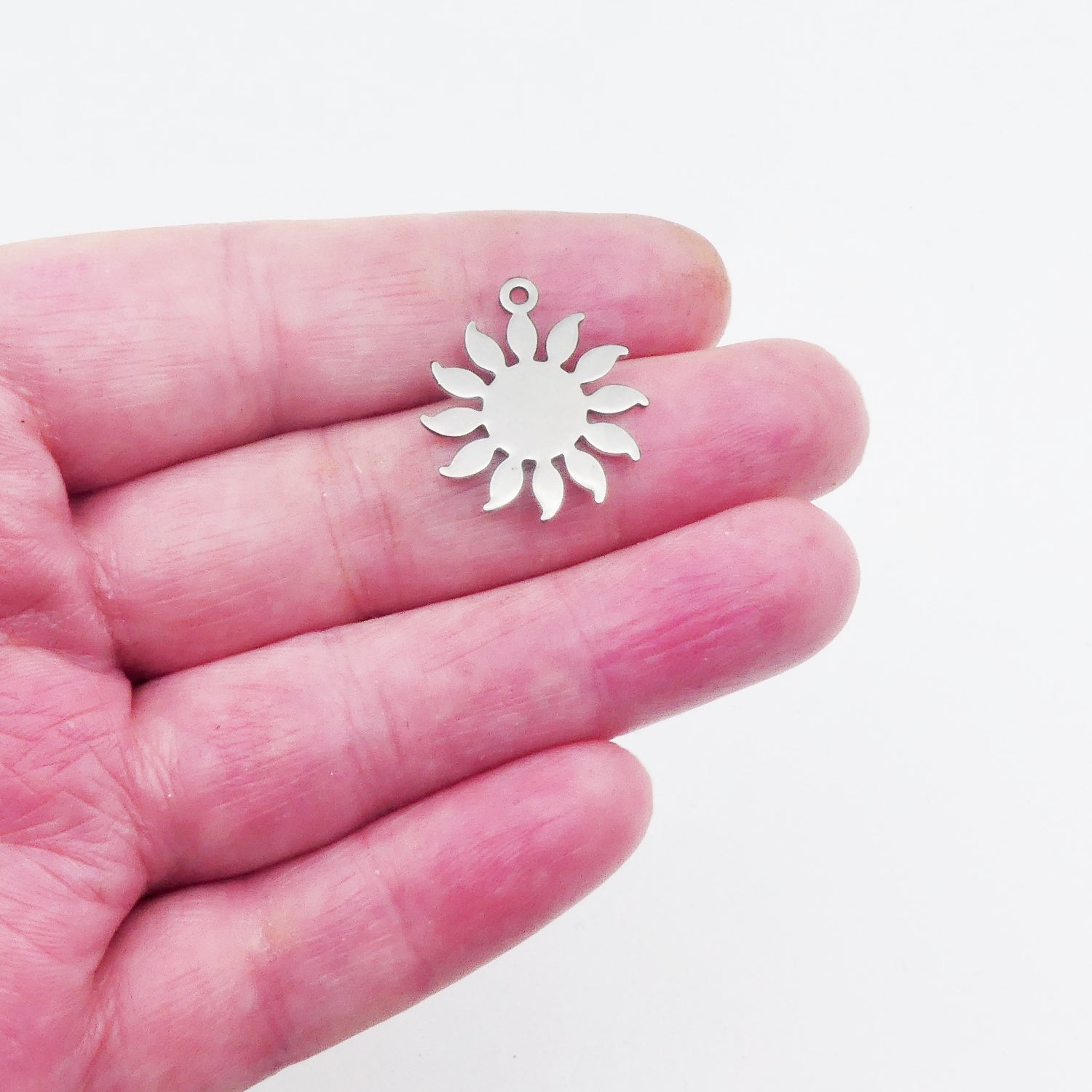 Five small, flat sun-shaped pendants, suitable for stamping or engraving - these are polished on the front but some small imperfections may be visible.