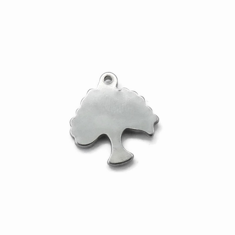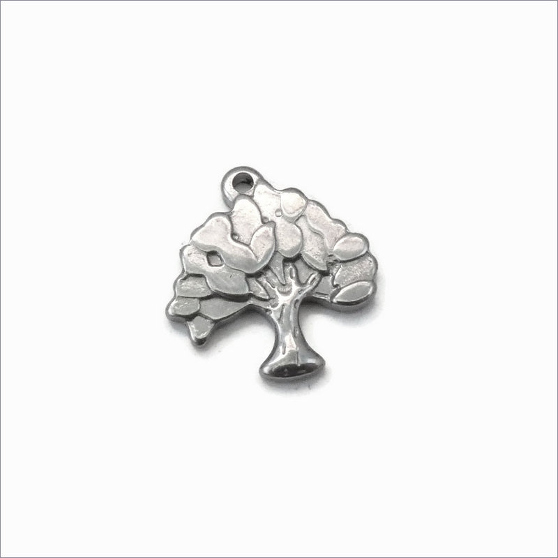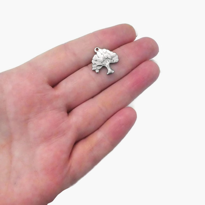 Five single-sided stainless steel tree charms, sized perfectly for bracelets or petite necklaces.