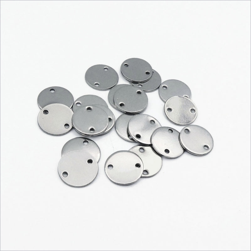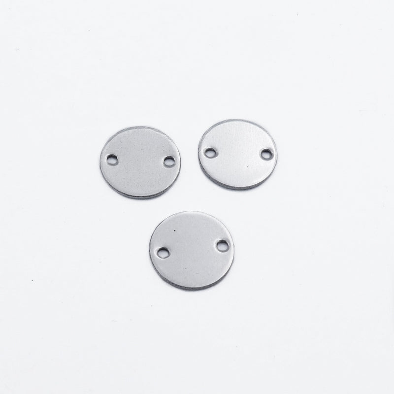 50 flat, blank connector tags, 10mm in diameter and 0.5mm thick.