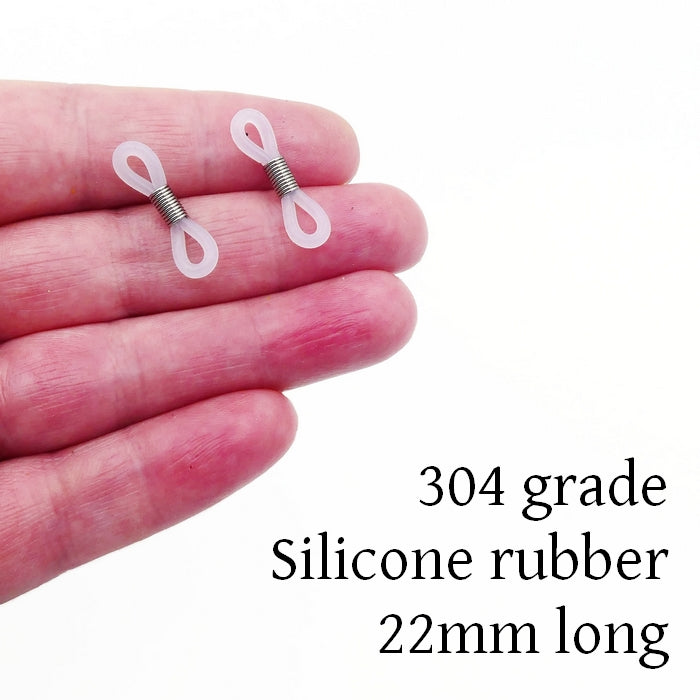 50 rubber connectors with a stainless steel coil, for making glasses chains - the rubber is soft and flexible, with a 2mm thickness.